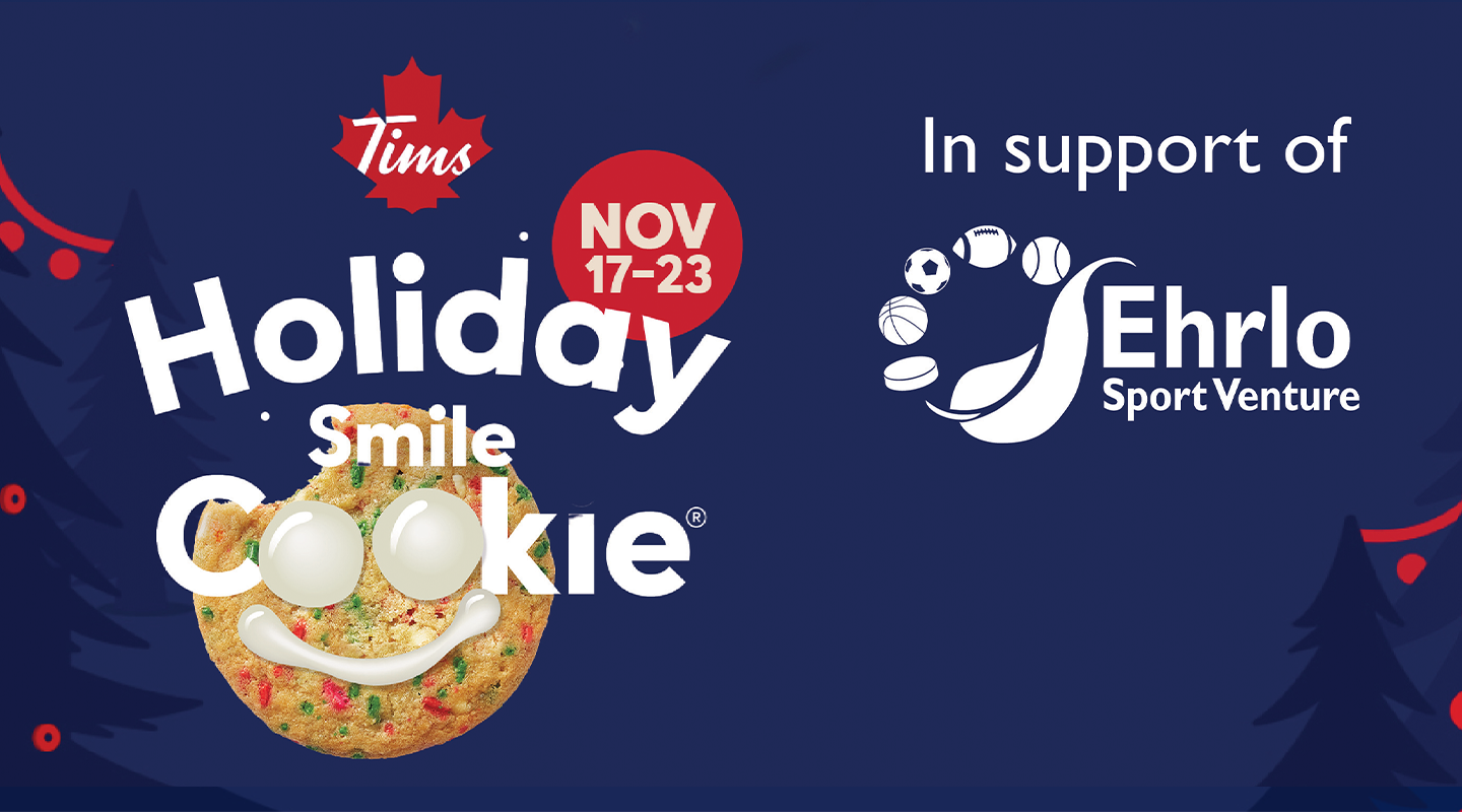 For the fourth year in a row, local Tim Hortons stores have proudly chosen Ehrlo Sport Venture as the charity of choice for the Holiday Smile Cookie Campaign – and it’s all about giving back to community.
